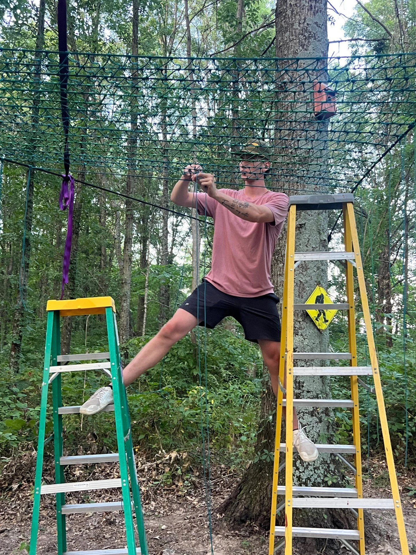 Gavin says it’s easy to make a small mistake and accidentally turn a clove into a hitch just by twisting the rope the wrong way. Practicing first helped eliminate that confusion before working on the actual structure.