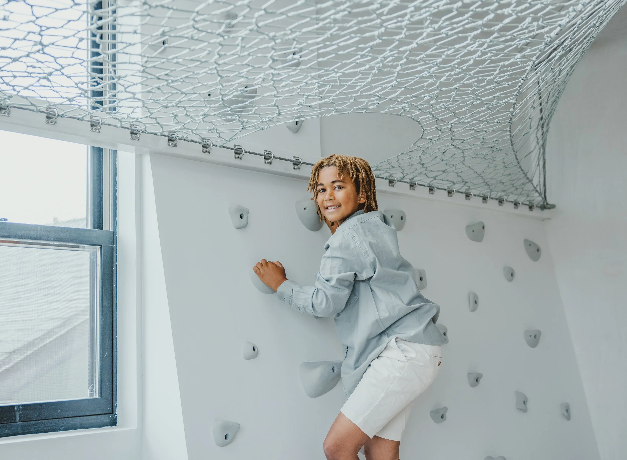 Screen-free play starts here. Our playroom nets are made for climbing, bouncing, and letting imaginations run wild — all while giving parents peace of mind. They’re durable, safe, and built to blend into your home’s design (not look like a playground took over).